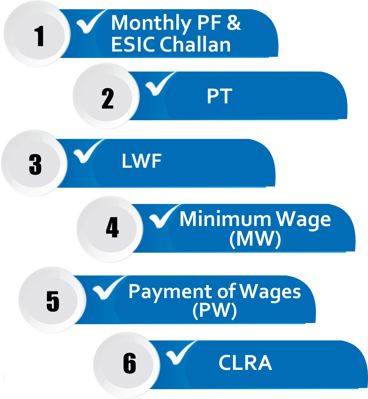 PF, ESIC, CLRA, PT, S&E and LWF